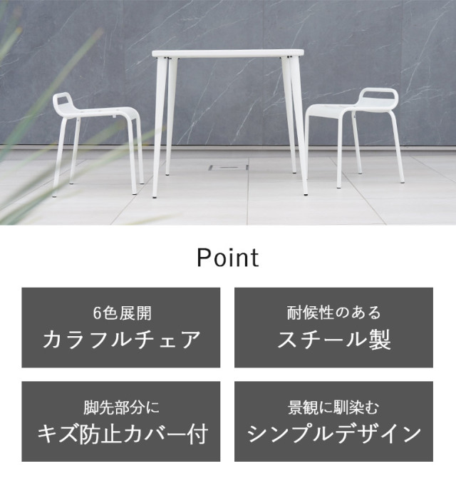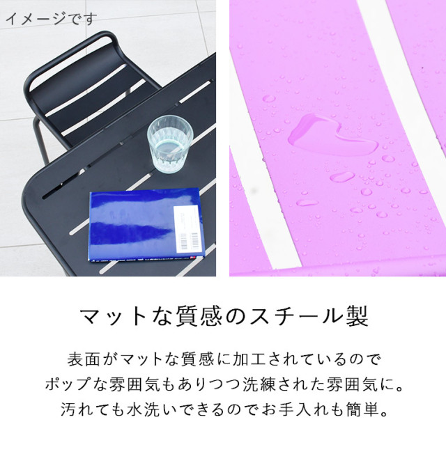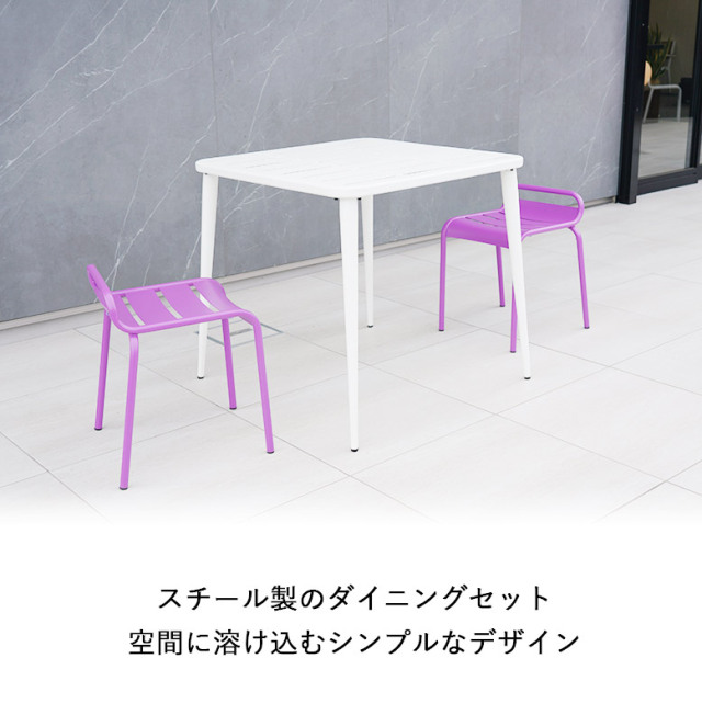 6色展開カラフルなガーデンチェアとホワイトのガーデンテーブル3点セット。