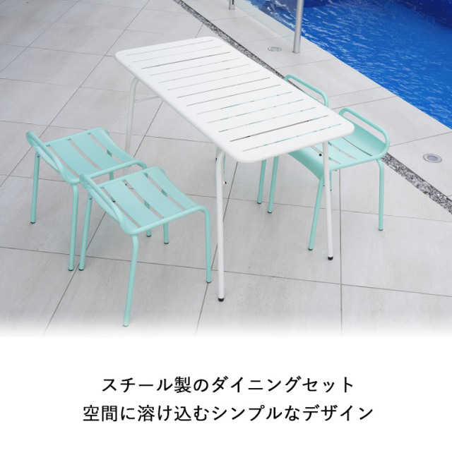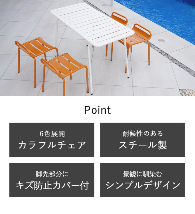 6色展開カラフルなガーデンチェアとホワイトのガーデンテーブル5点セット。