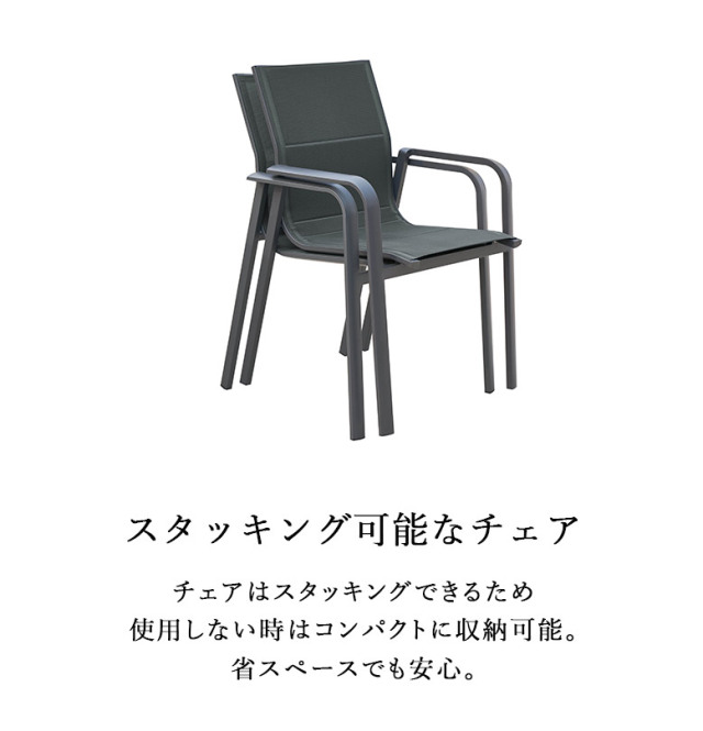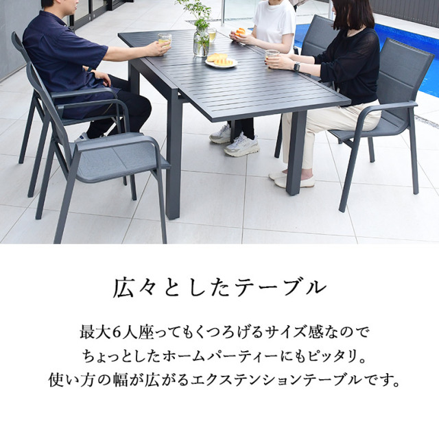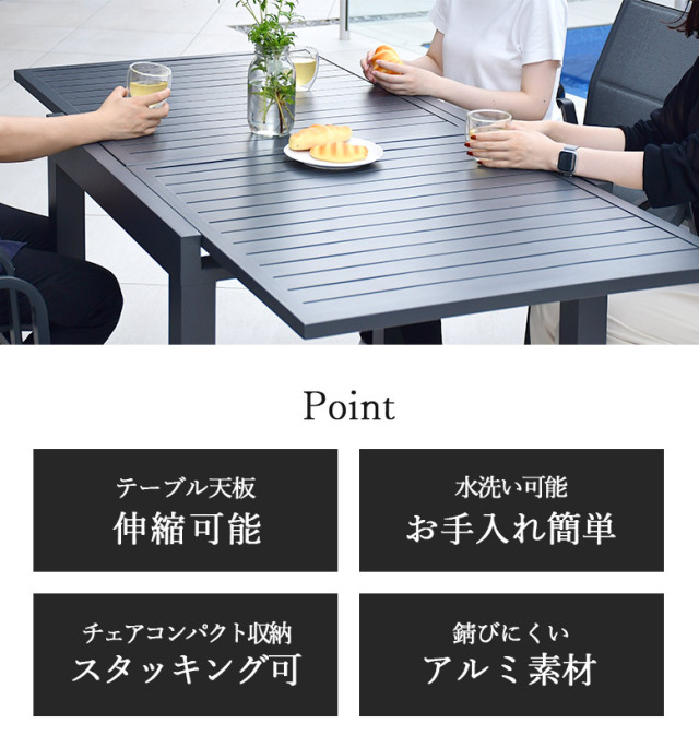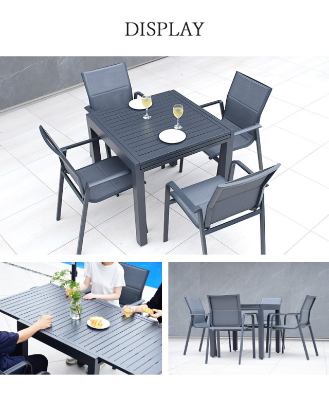 伸縮可能なアルミ製テーブルとテスリン生地を使用したチェアの5点セット