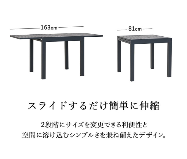 ・テーブル(拡張時):約 横幅163×奥行81×高さ75cm