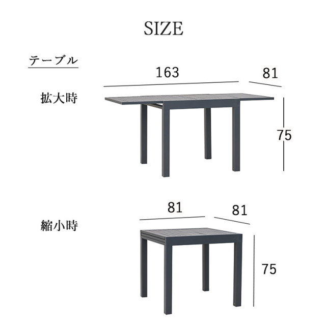 ・テーブル(縮小時):約 横幅81×奥行81×高さ75cm