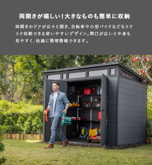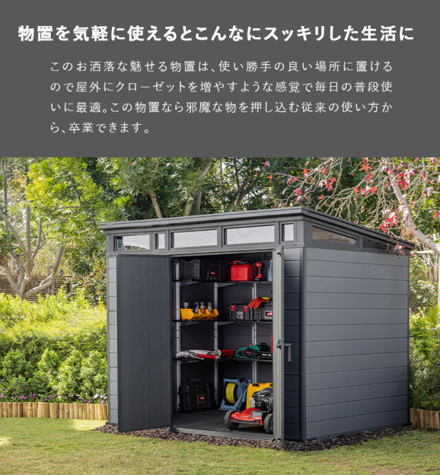 リアルな木調で素敵なお庭造りも叶える、おしゃれな大型物置
