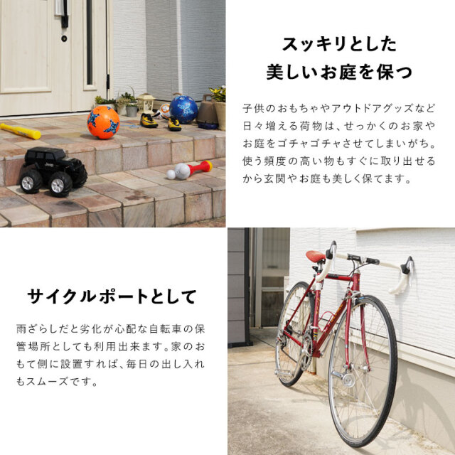 ・収納庫・物置に関しましては、完全防水仕様ではございません。隙間から雨水が入る場合もございます。あらかじめご了承ください。