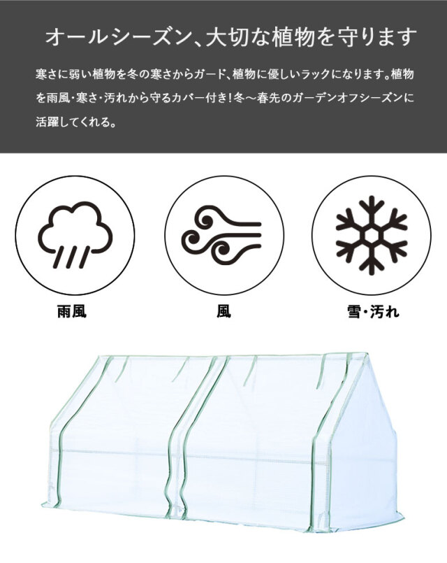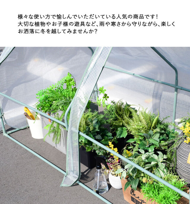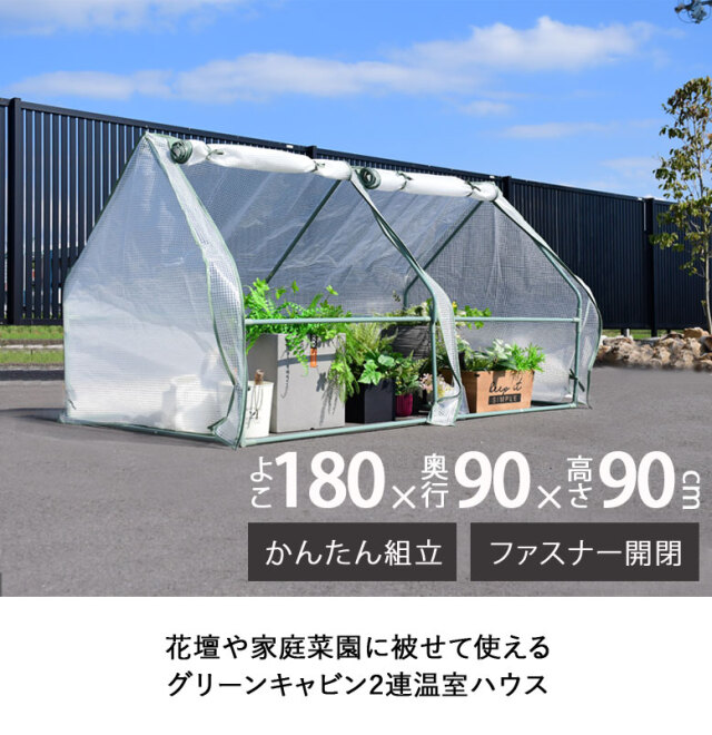 花壇や家庭菜園に被せて使える、グリーンキャビン2連温室ハウスです。