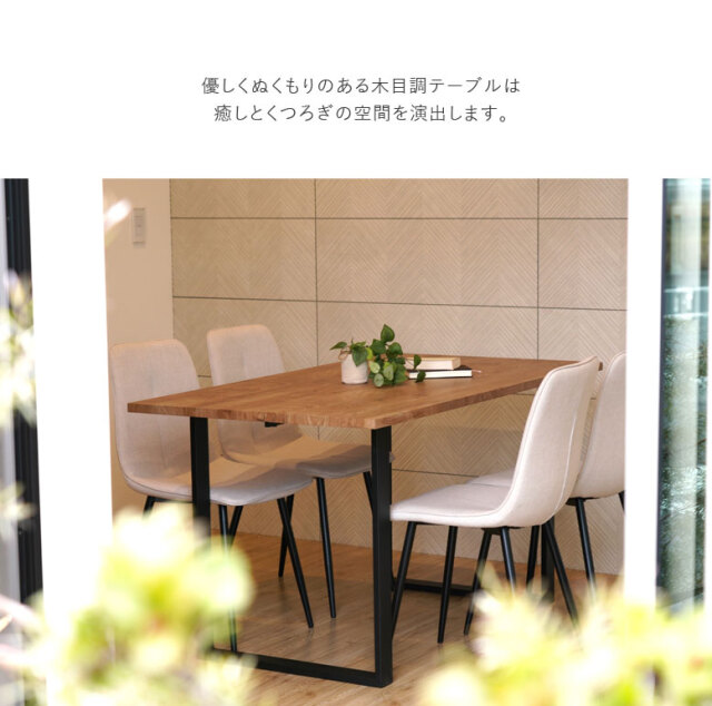 憧れの一枚板を使用したダイニングテーブル。 でも一枚板のテーブルはお値段が。。。 そんな方におすすめしたい木目調のダイニングテーブル。