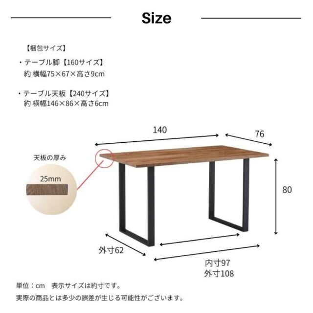 ・ダイニングテーブルに最適な幅140cm天板