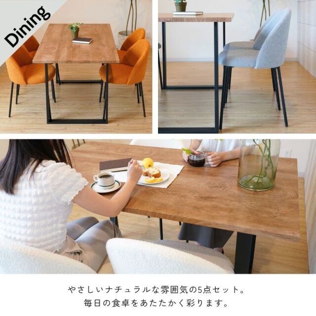 木目調ダイニングテーブル ムートンハーフチェア 5点セット