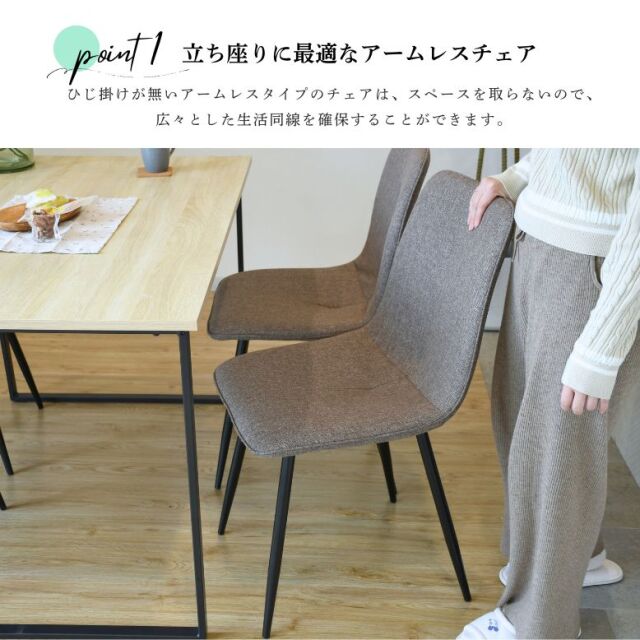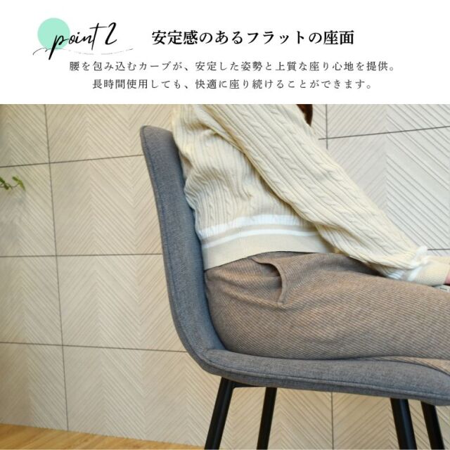 ・チェアは温かみあるファブリックとスチールが調和し、アーバンモダンなダイニング空間を演出。