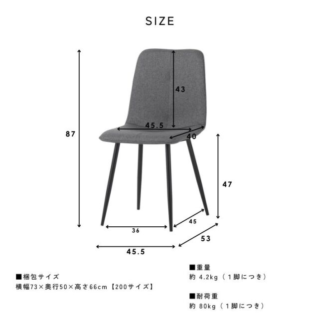 約 横幅45.5×奥行53×高さ87cm(座面高:約 47cm)