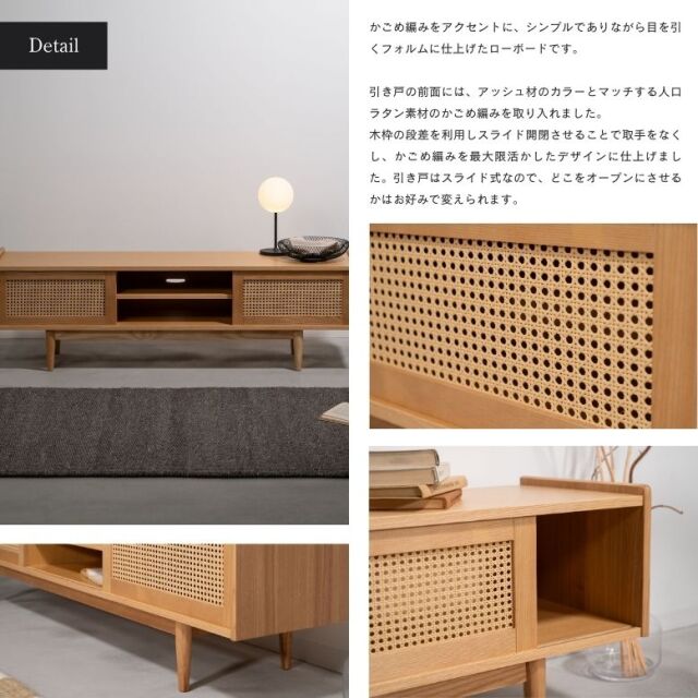 ・かごめ編みをアクセントに、シンプルでありながら、目を引くフォルムに仕上げたローボードです。