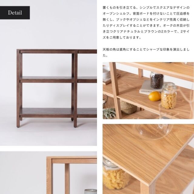 ・置くものを引き立てる、シンプルでスクエアなデザインのオープンシェルフ。