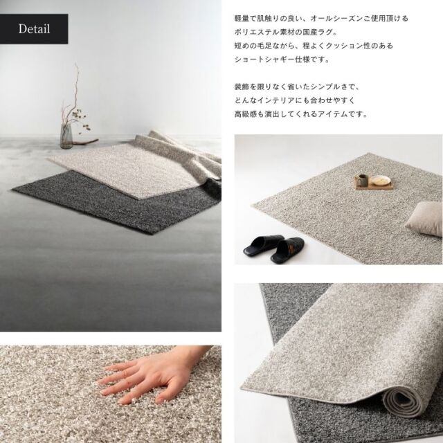 ・軽量で肌触りの良い、オールシーズンご使用頂けるポリエステル素材の国産ラグ。