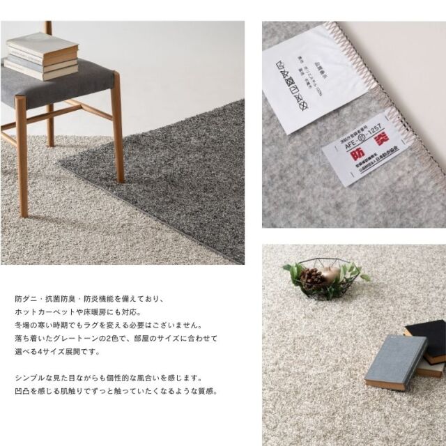 ・防ダニ・抗菌防臭・防炎機能を備えており、ホットカーペットや床暖房にも対応。