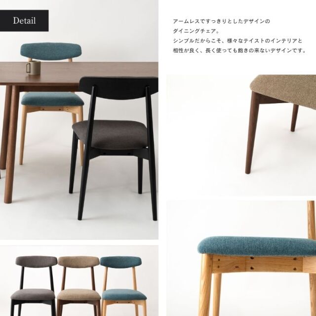 アームレスですっきりとしたデザインのダイニングチェア。