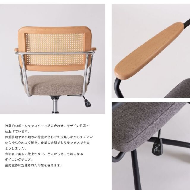 背面に抜け感のある人工ラタン素材を使用したデスクチェア。