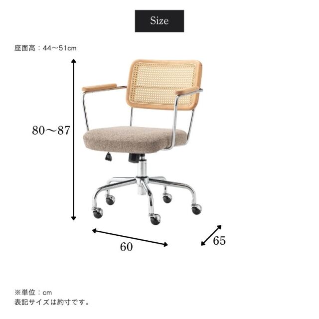約 幅60×奥行65×高さ80〜87cm (座面高:44〜51cm)
