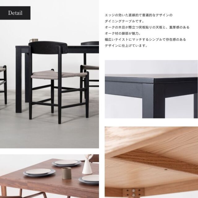 ・エッジの効いた直線的で普遍的なデザインのダイニングテーブル。