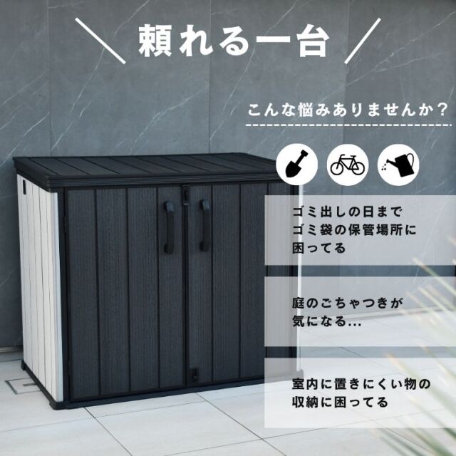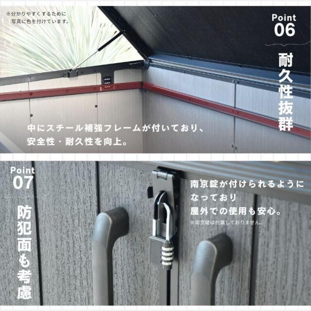 ・収納庫・物置に関しましては、完全防水仕様ではございません。隙間から雨水が入る場合もございます。あらかじめご了承ください。