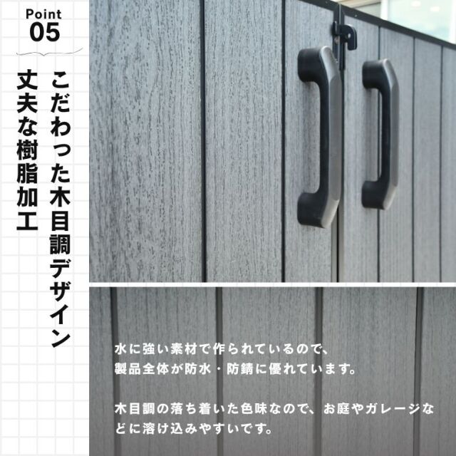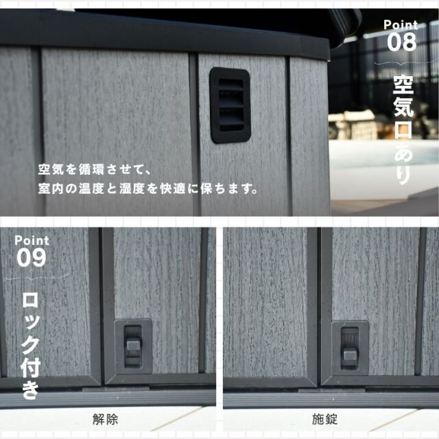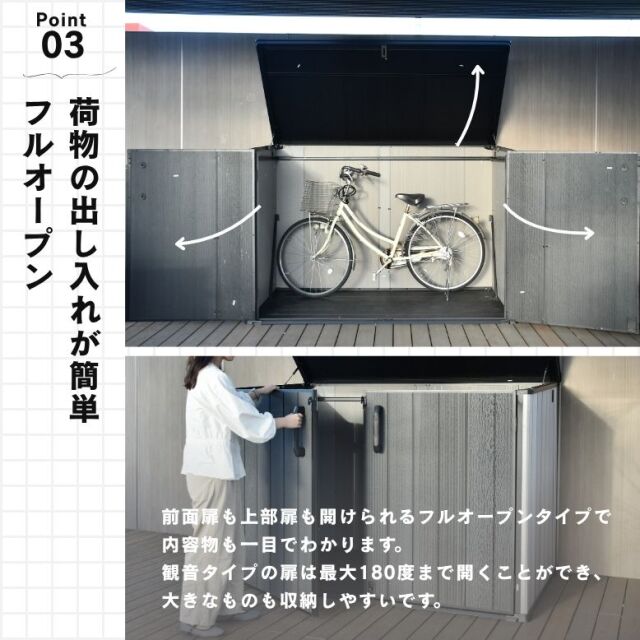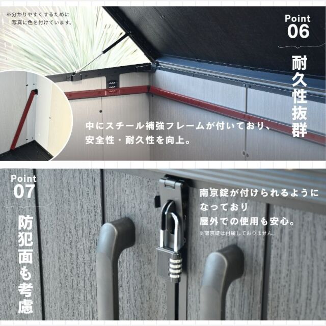 ・収納庫・物置に関しましては、完全防水仕様ではございません。隙間から雨水が入る場合もございます。あらかじめご了承ください。