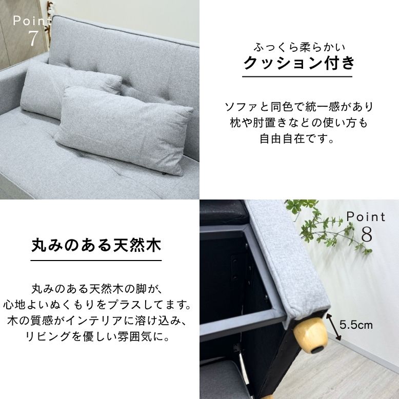 ・1人暮らしやワンルームにはもちろん、リビングでゆったり座れる2〜3人掛ソファとしてもおすすめです。