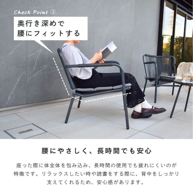 空間を広く見せるロータイプチェアで手軽にリゾート気分を。