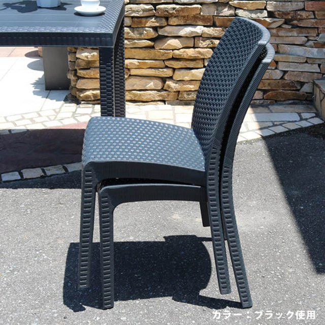 イタリア生まれの高品質ラタン調ガーデンチェアー。プラスチック製で軽量、水洗いが出来るのでお手入れも簡単。