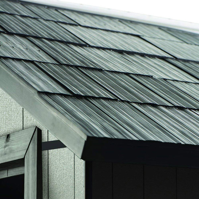 Keter社の木材の様に切る・塗るが出来るプラ新素材の大型物置。