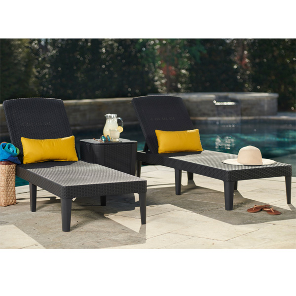 持ち運び便利でメンテナンスフリー 折り畳み式でコンパクト設計のサンラウンジャーとテーブルのセット