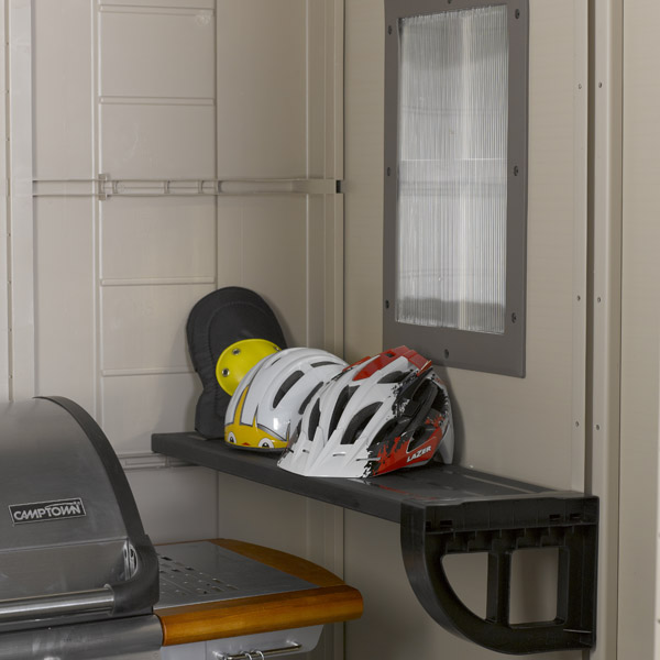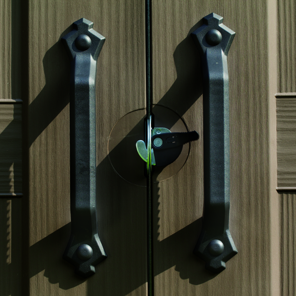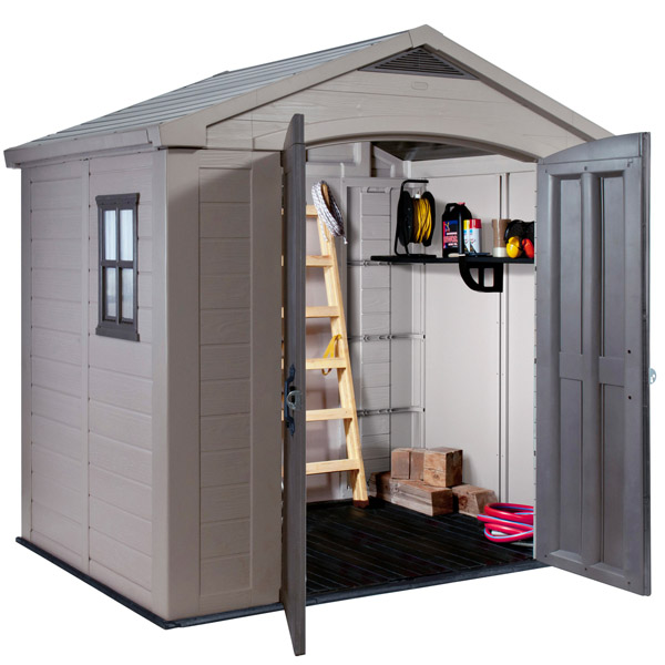 Keter社の木目調プラ素材の大型収納庫。