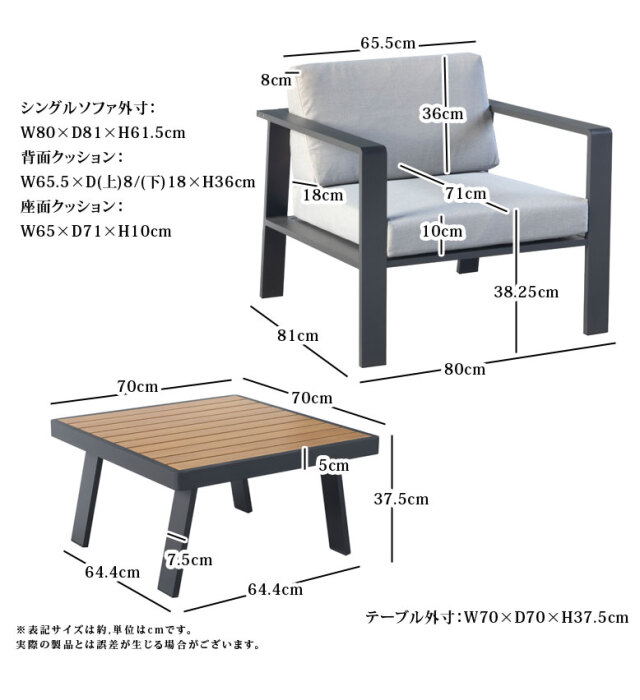 テーブル外寸 約 横幅70×奥行70×高さ37.5cm