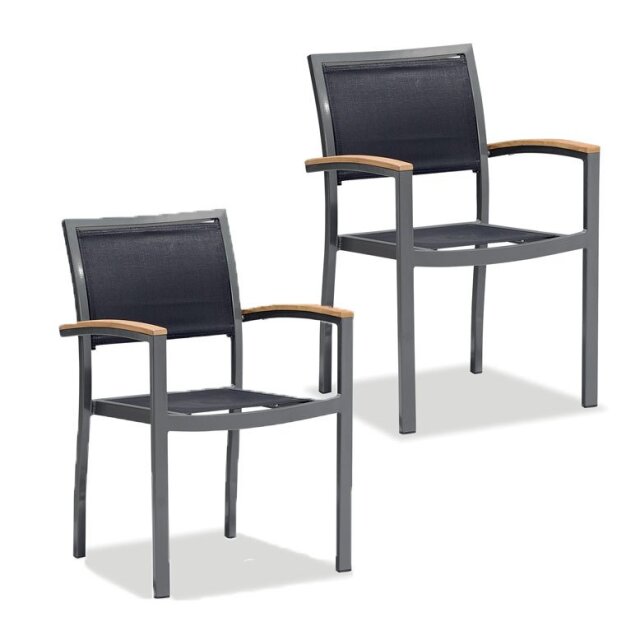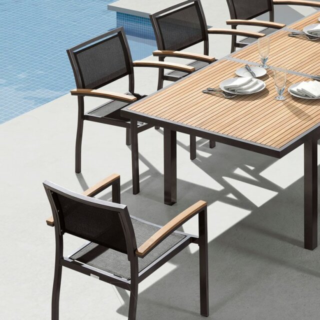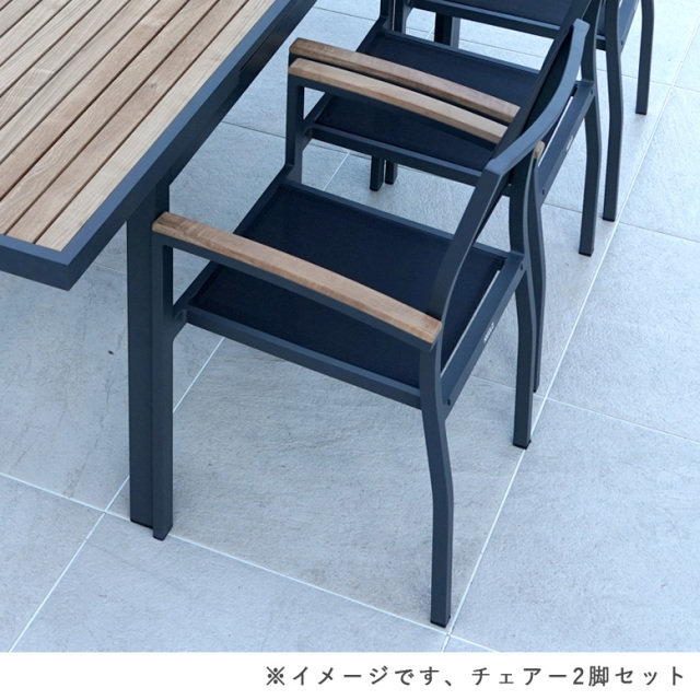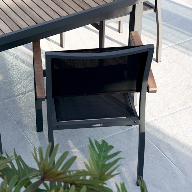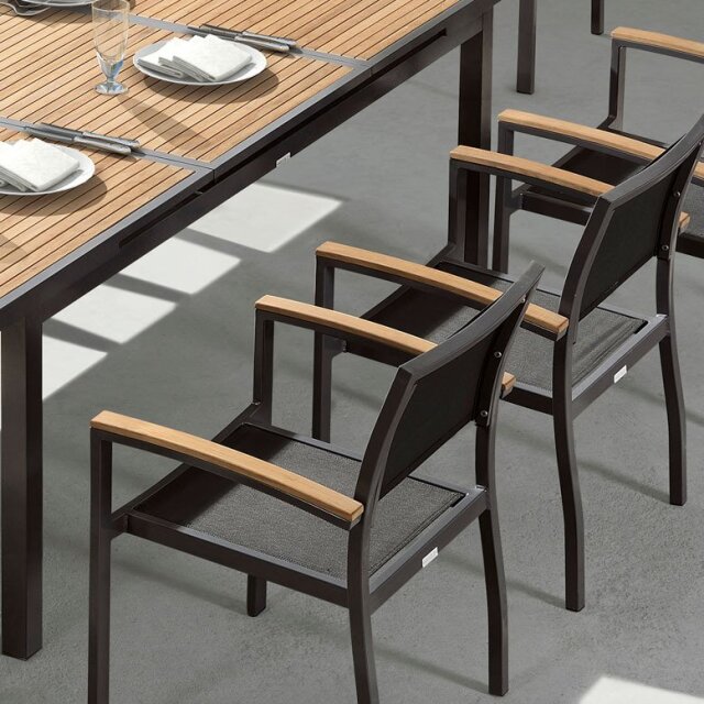 チェア:粉体塗装アルミニウム、チーク、テスリン