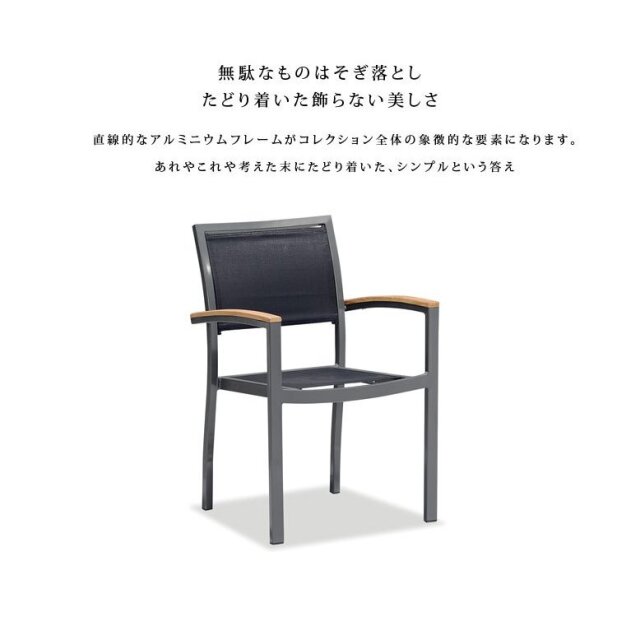 無駄なものをそぎ落とした、直線的なアルミフレームが美しい。 最高品質のガーデンテーブルセット。