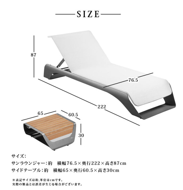 ・サンラウンジャー:約 横幅76.5×奥行222×高さ87cm