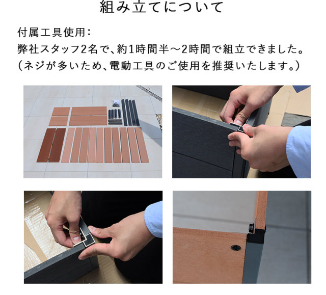 ・ネジや釘などを樹脂フェンスに使用される場合は必ず「下穴」をあけてからご使用ください。加工の際に割れが発生する場合もございます。