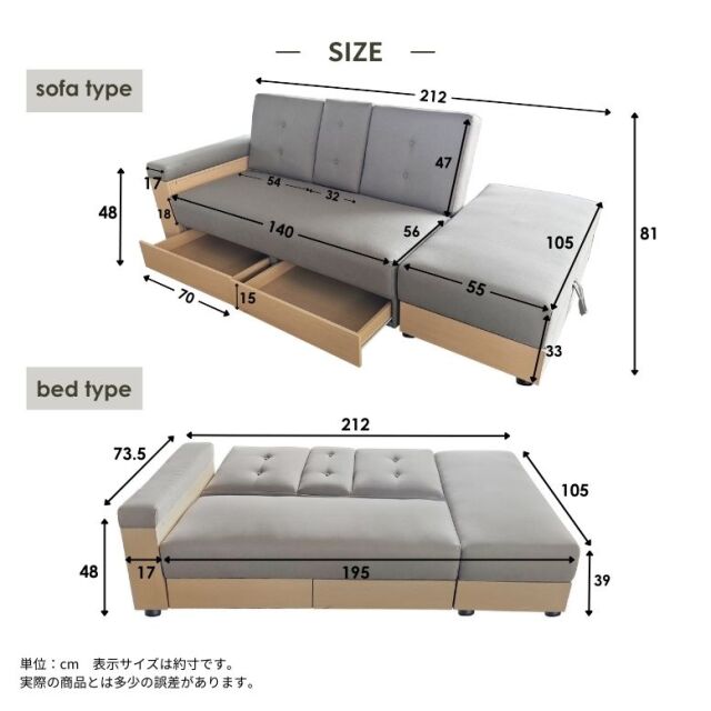 ソファ時:約 横幅212×奥行105×高さ81cm