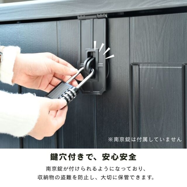 ・南京錠が付けられるようになっており、防犯面も考慮。