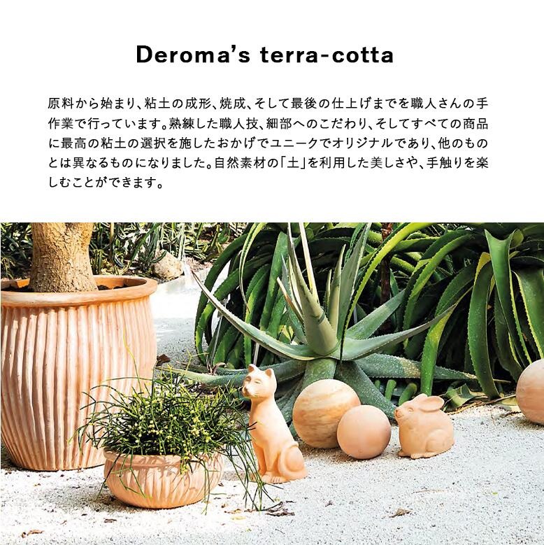 テラコッタは表面が多孔質で空気、水分を通しやすい特徴があります。 自然素材の『土』を利用した美しさや手触りを楽しむことが出来ます。