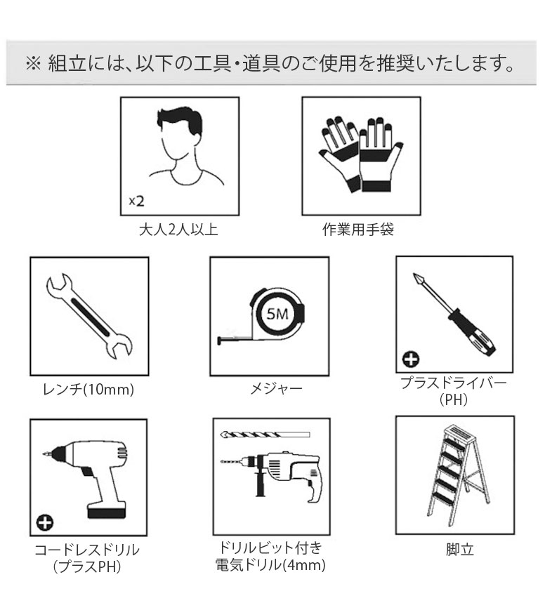 以下の工具などのご使用を推奨いたします。